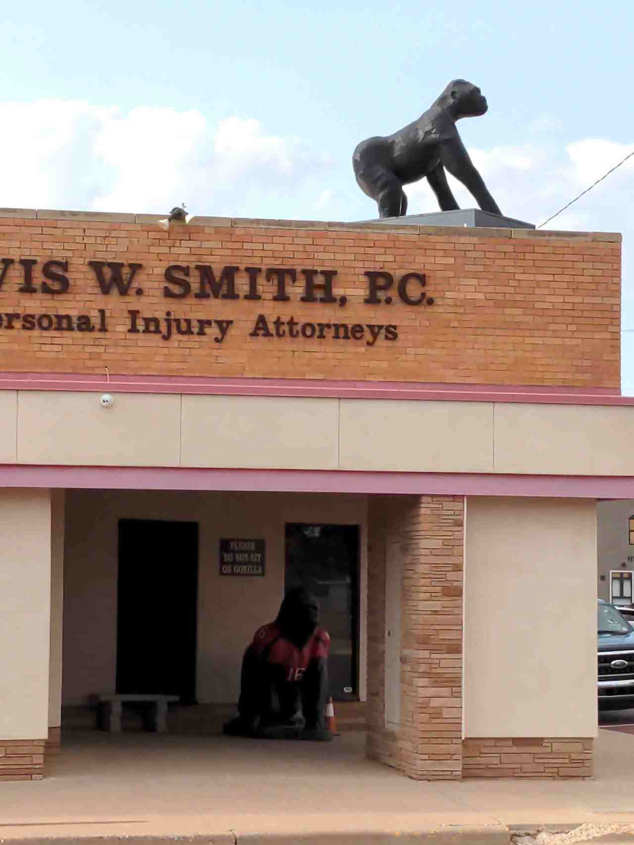 Gorillas on the loose… Date: November 9, 2022Author: Museum Curator Category: Art Tags: ape, apes, art, bronze, geotag art, gorilla, great apes, guard, guarding, keeping guard, metal art, sculpture, sentry, sentry post, statue, watching Post navigation ← Have a green chile cheese burger… Engine, engine, number 9… → 33.583744 -101.84814 Two great apes, one on top of the building and the other underneath. Show me where it is! Beware! Ape escape! Share this: Click to share on X (Opens in new window) X Click to share on Facebook (Opens in new window) Facebook Click to share on Pinterest (Opens in new window) Pinterest Click to share on Tumblr (Opens in new window) Tumblr Click to email a link to a friend (Opens in new window) Email Like Loading... Related