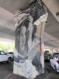 Underneath the interstate highway here is a huge gallery of murals. Each concrete column is a canvas.