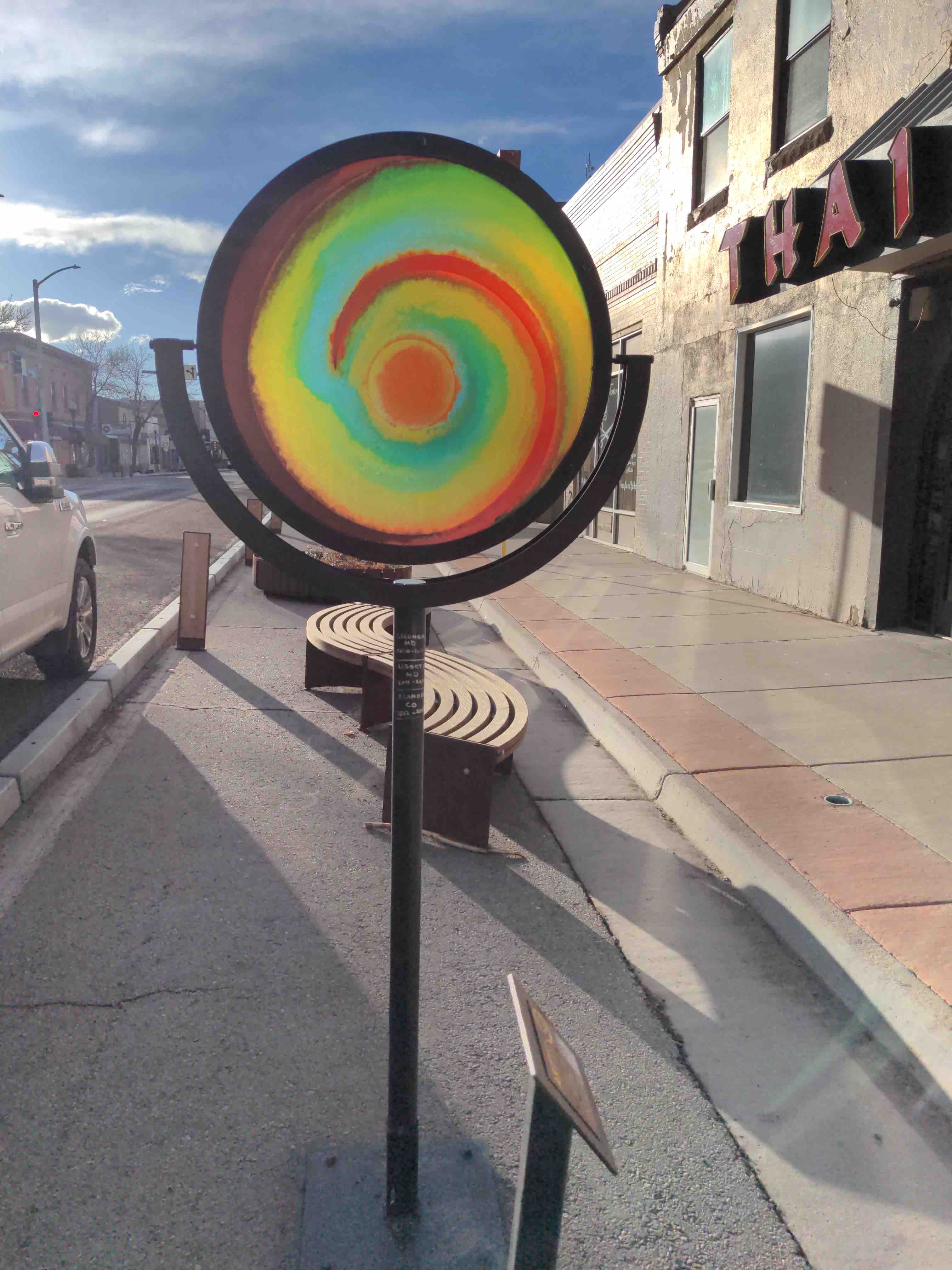 Looks like a giant lollipop… Date: January 17, 2024Author: Museum Curator Category: Art Tags: alien, art, color, gallery, geotag art, glass, lens, light, lollipop, magnify, sculpture, sidewalk gallery, street gallery, sucker, sun, sunlight Post navigation ← One fish, two fish… Find sanctuary here… → 37.468254 -105.86482 Magnify is by Alien Artifact Studios. Show me where it is! Pull your tongue across this! Share this: Click to share on X (Opens in new window) X Click to share on Facebook (Opens in new window) Facebook Click to share on Pinterest (Opens in new window) Pinterest Click to share on Tumblr (Opens in new window) Tumblr Click to email a link to a friend (Opens in new window) Email Like Loading... Related