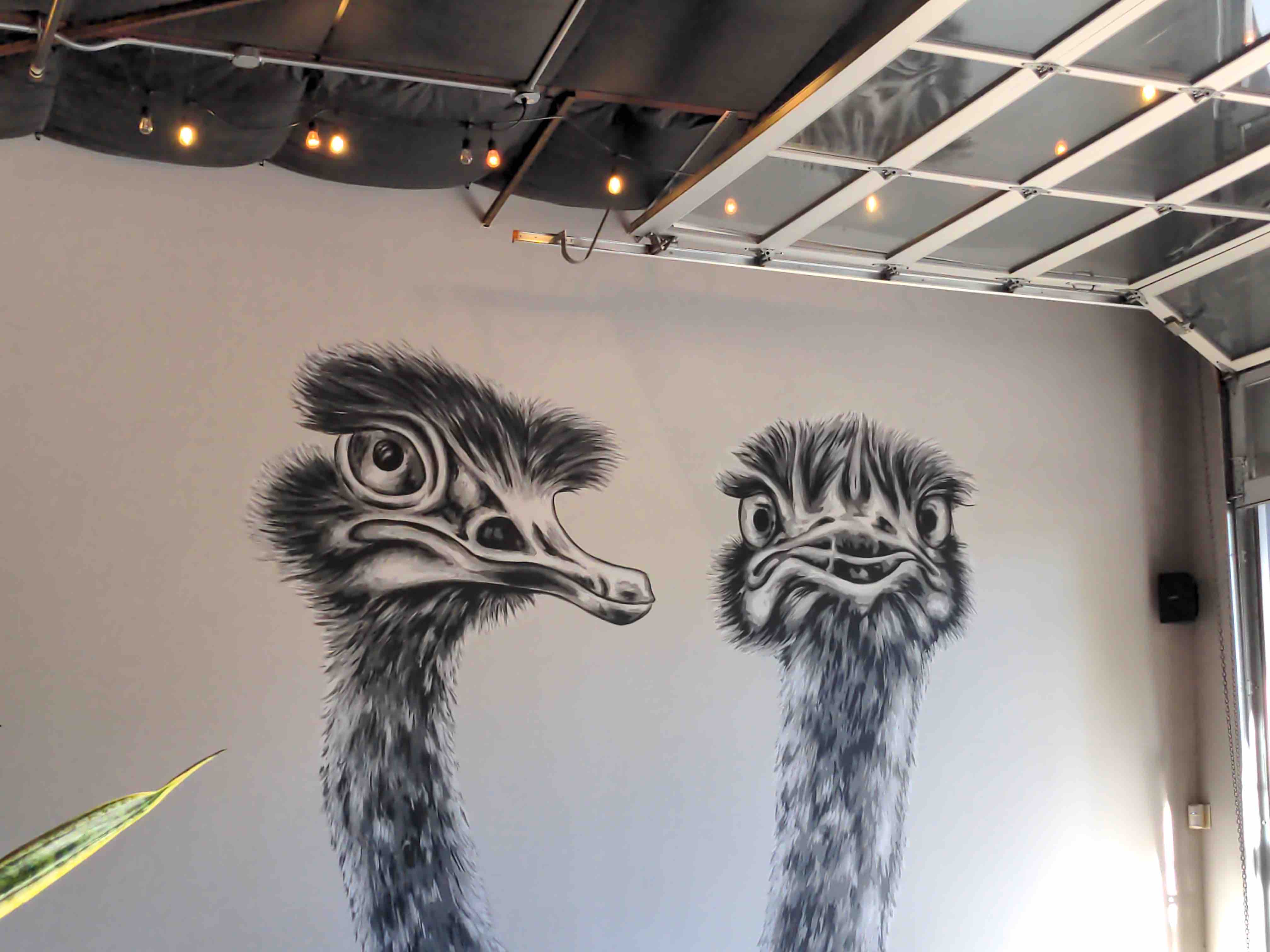 Don’t bother the ostriches… Date: October 2, 2024Author: Museum Curator Category: Art Tags: angry, annoyed, art, big bird, big birds, bird, geotag art, mural, ostrich, ostrich heads, ostriches, painting, scowl, wall art, wall painting Post navigation ← A graphic green swan… Feed me… → 30.049265 -99.14103 Ostriches on wall look annoyed. Show me where it is! A pair of ostriches appear to be annoyed. Share this: Share on X (Opens in new window) X Share on Facebook (Opens in new window) Facebook Share on Pinterest (Opens in new window) Pinterest Share on Tumblr (Opens in new window) Tumblr Email a link to a friend (Opens in new window) Email Like Loading... Related