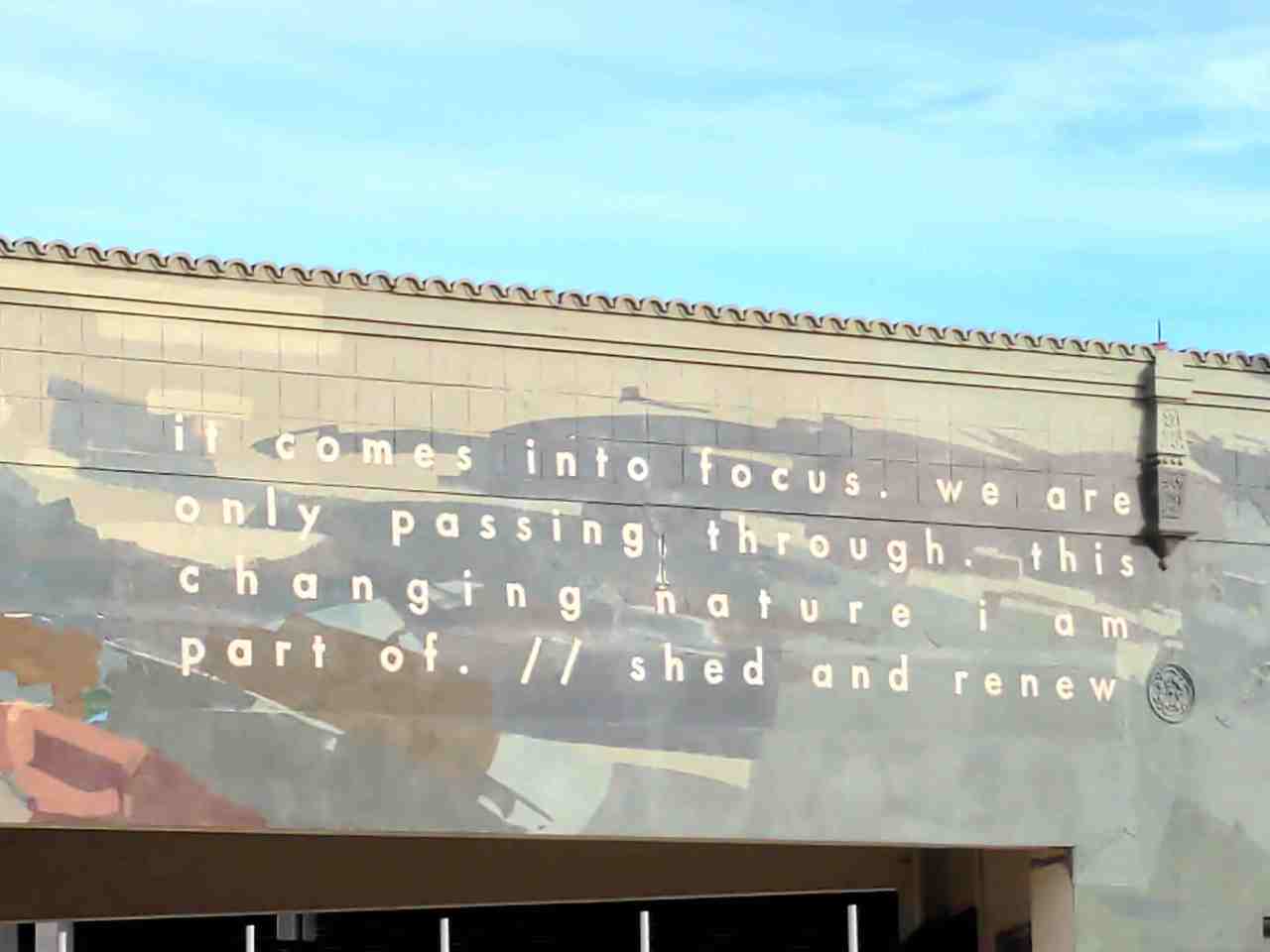 Mural and poetry across the street, “…we are only passing through. this changing nature i am part of.”